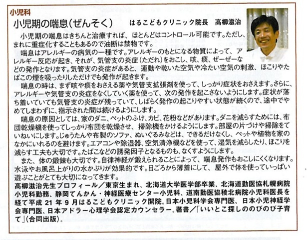 青いポスト9月21日号に「「小児の喘息」というテーマで掲載されました。