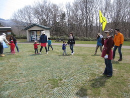 はるっこ保育士お手製の旗を目印に、段々と人が集まります。